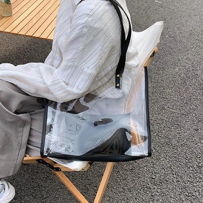 D0LF Transparent PVC Shoulder Bags for Women Girls Jelly Large Tote Summer Beach