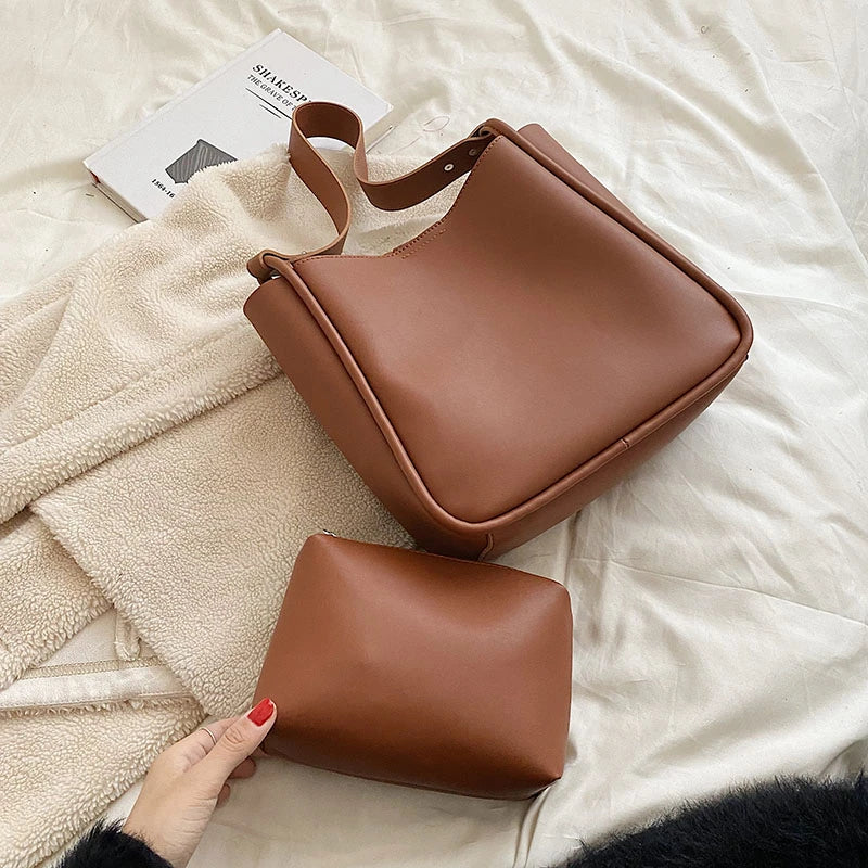 Daily Bucket Women Shoulder Bags PU Leather Handbag Business Tote