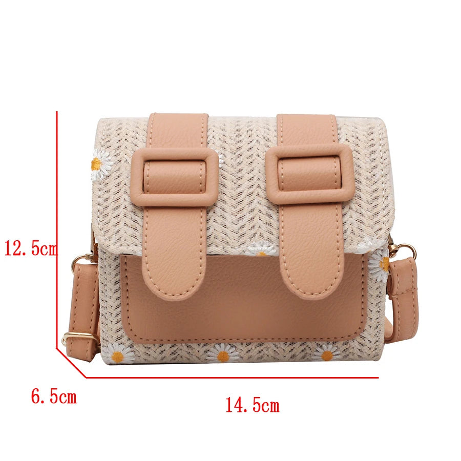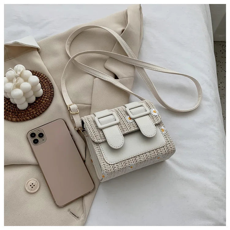 Daisy Embroidery Crossbody Bag Ladies Shoulder Straw Bag
