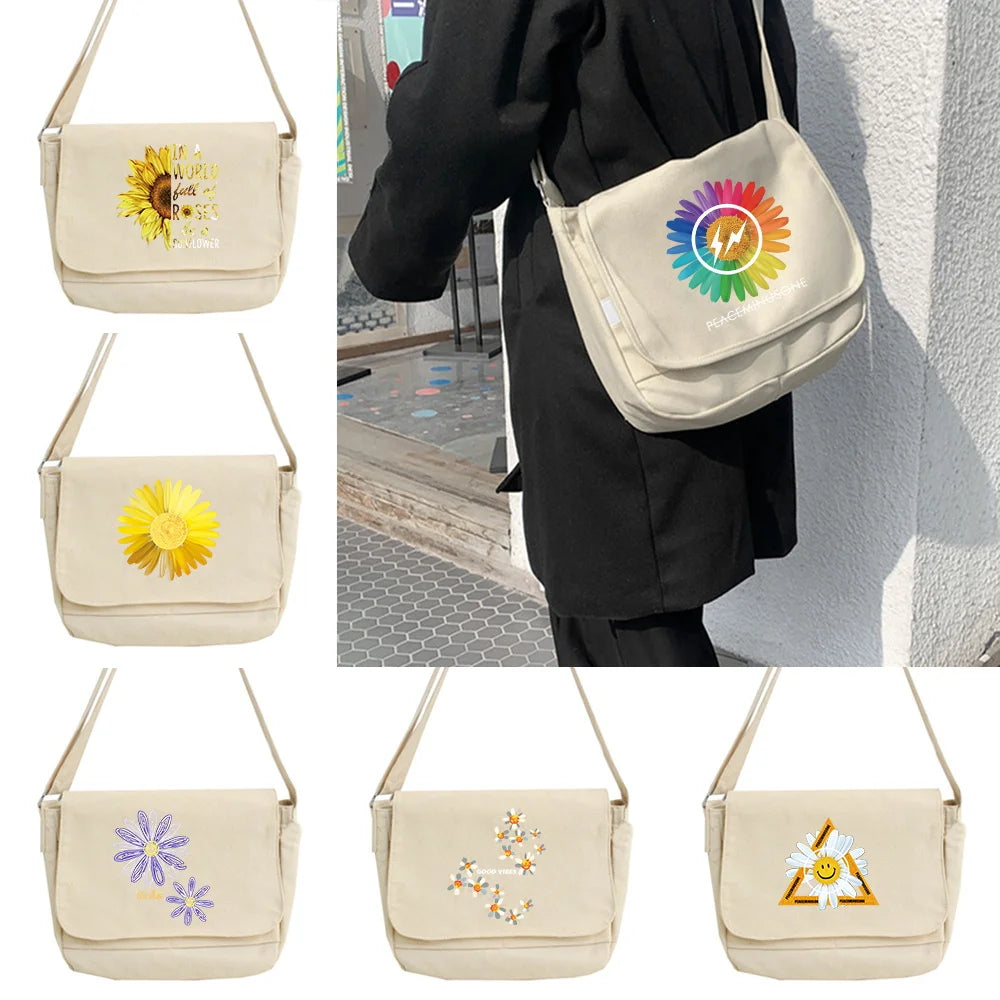 Daisy Pattern Messenger Bag College Style Shoulder Bag
