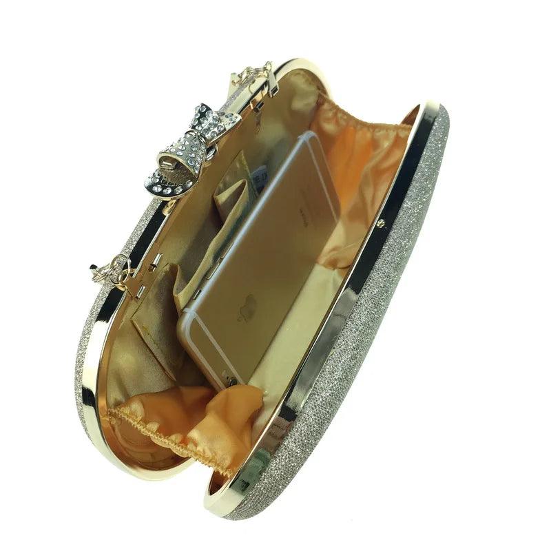Elegant and stylish handbag perfect for formal events, parties, weddings. Features dazzling diamond embellishments.