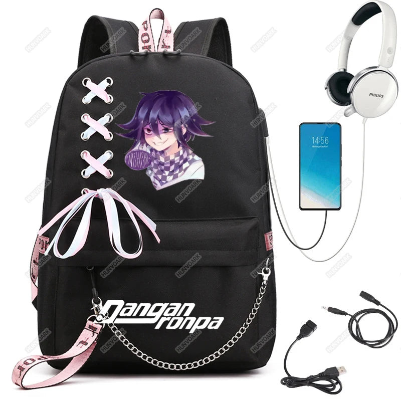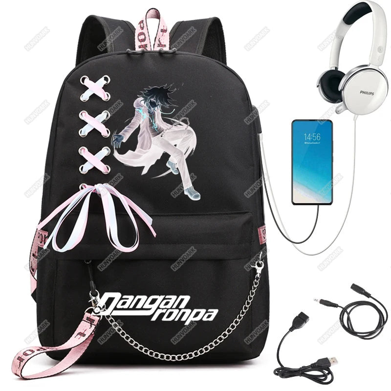 Danganronpa Nanami Chiaki Backpack Travel Laptop USB Teenager