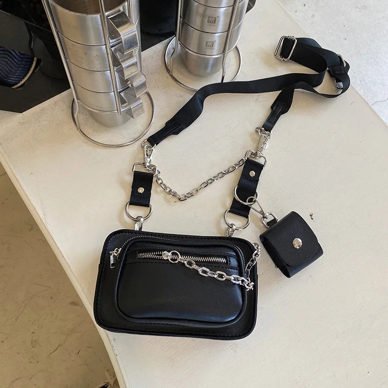 Dark Gothic Mini Square Bag Women Street Pu Leather Chains Chest Bags