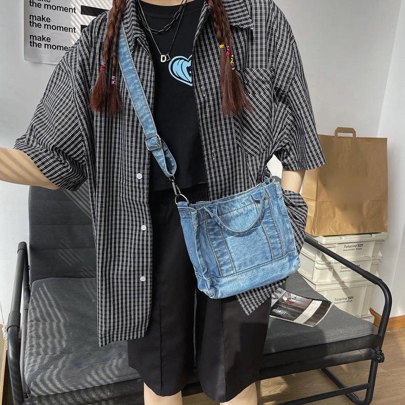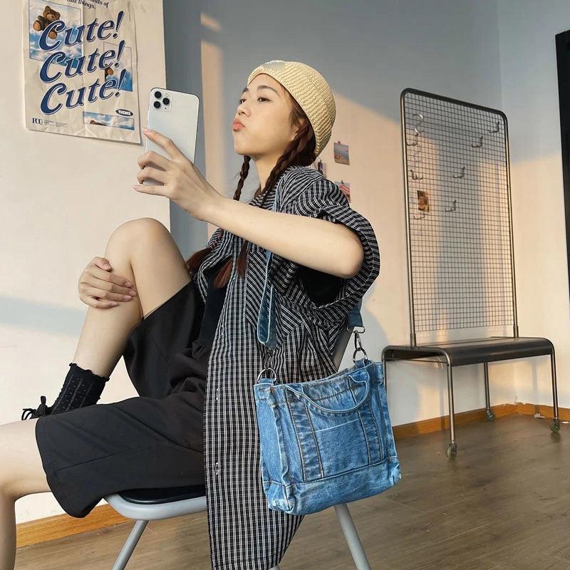 Stay stylish and organized with this versatile denim canvas handbag. Perfect for students and everyday use.