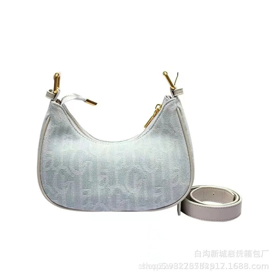 Denim Half Moon Crossbody Bag Shoulder Handbag