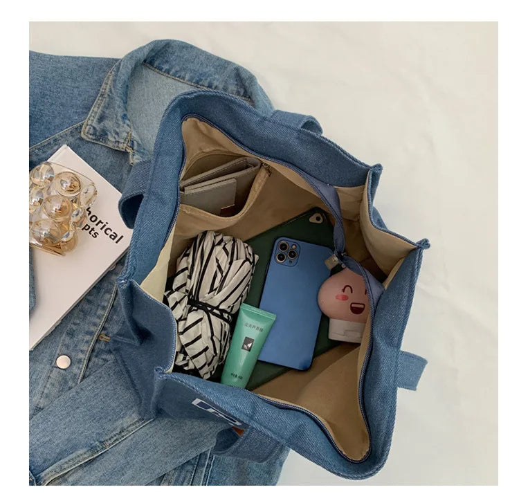 Denim Shoulder Bag Large Flap Handbag Women's Crossbody Bag