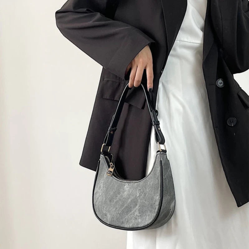 Denim Shoulder Bags Women Underarm Half Moon Streetwear Handbag