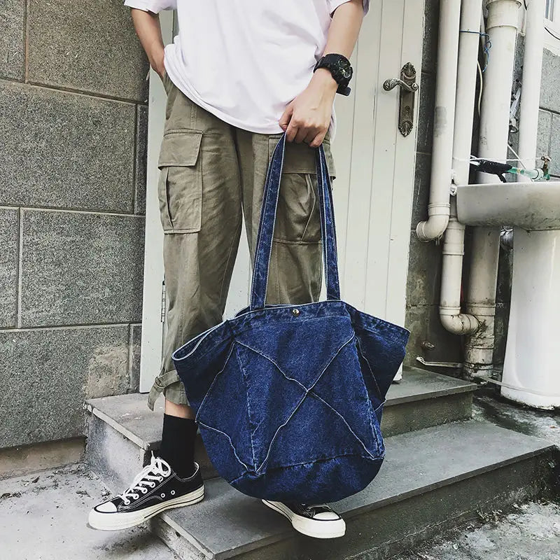 This denim shoulder bag is perfect for women who love a retro style. It has a large capacity, making it ideal for shopping or running errands. The vintage design adds a touch of nostalgia to any outfit.