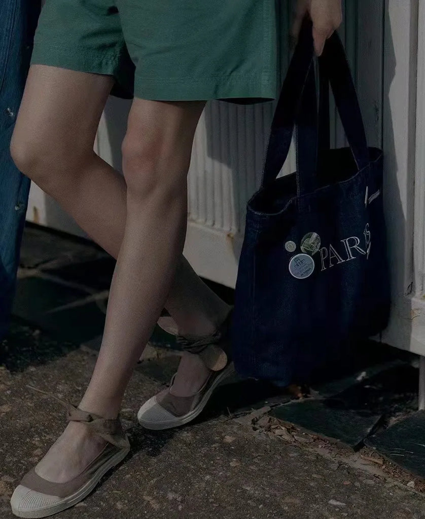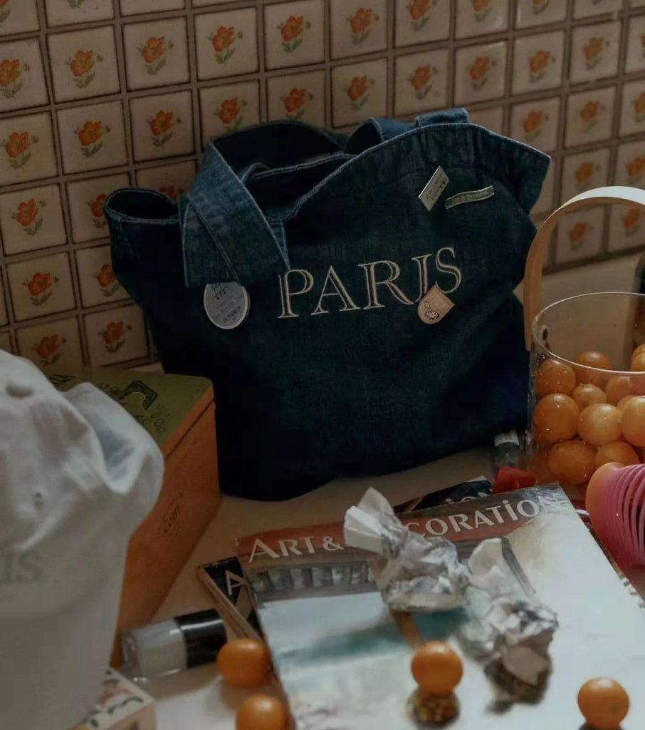 Denim Shoulder Tote Letters Handbag Large Compartment Soft Casual Satchel Bag