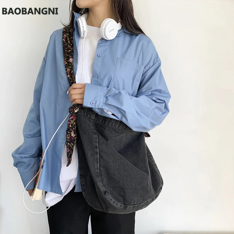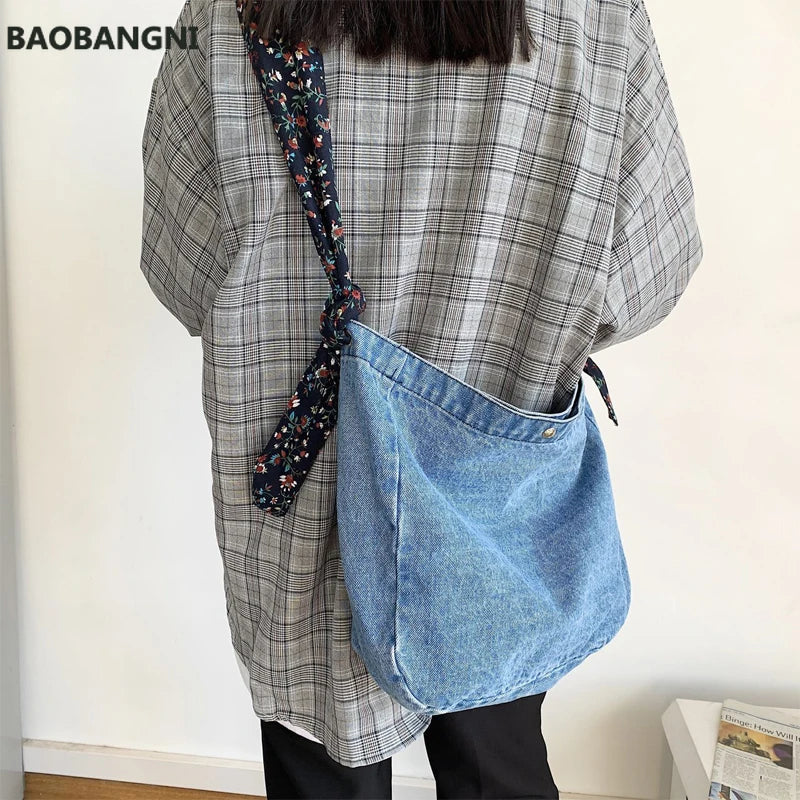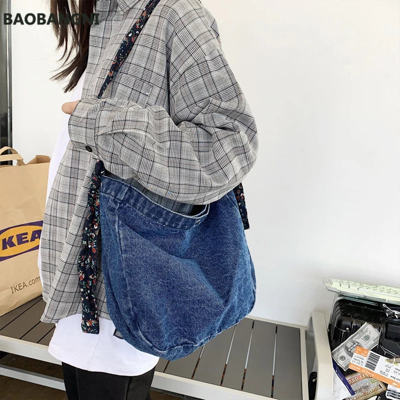 Denim Tote Bag Broken Flower Strap Jean Bag Girl Casual Handbags