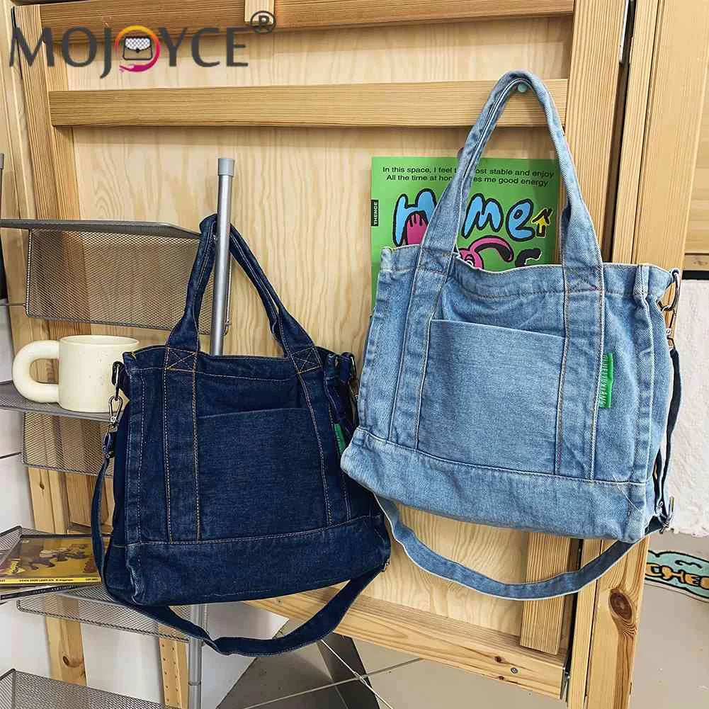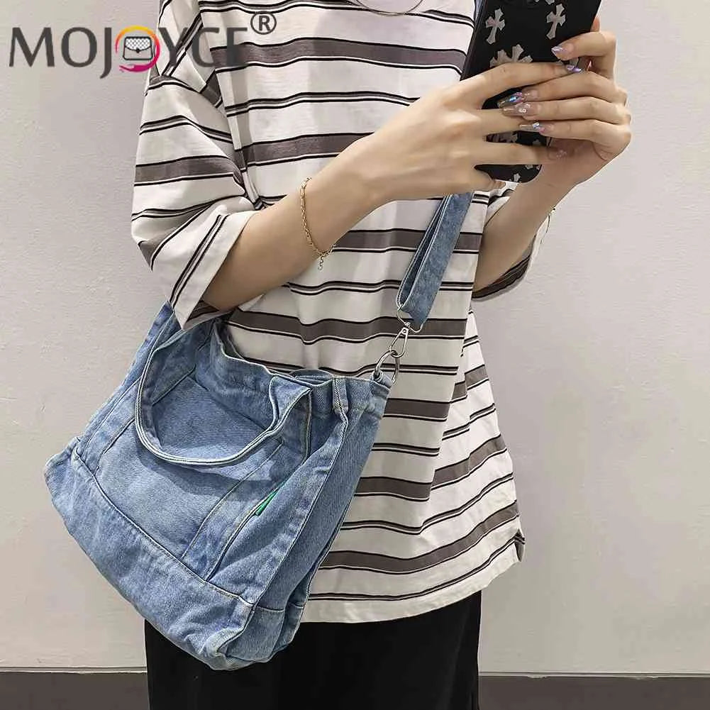Denim Women Messenger Bag Large Capacity Adjustable Strap Multi-Pockets
