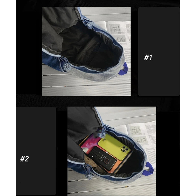 This denim daypack is perfect for daily wear and birthdays. It has a large capacity and is stylishly designed for school or casual use.