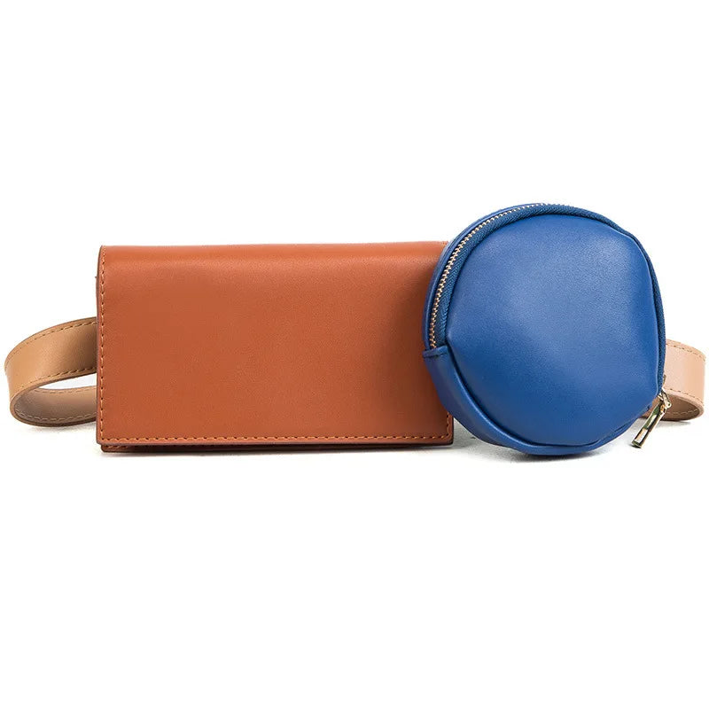 Elevate your style with this chic 2-piece set of waist bags made of high-quality leather. Includes a detachable square bag and a round bag with a chain strap.