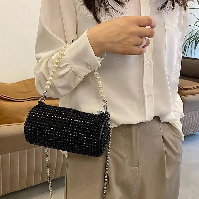 Elegant and stylish underarm shoulder bag with intricate diamond beading for women.