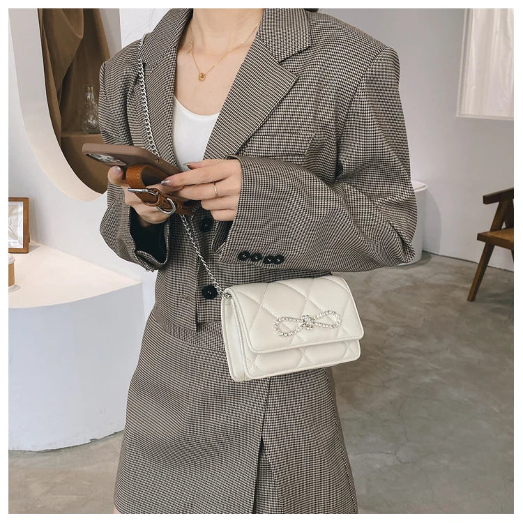 Diamond Bow Mini Square Crossbody Bag Chain Shoulder Mess