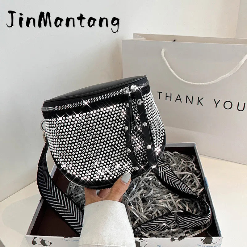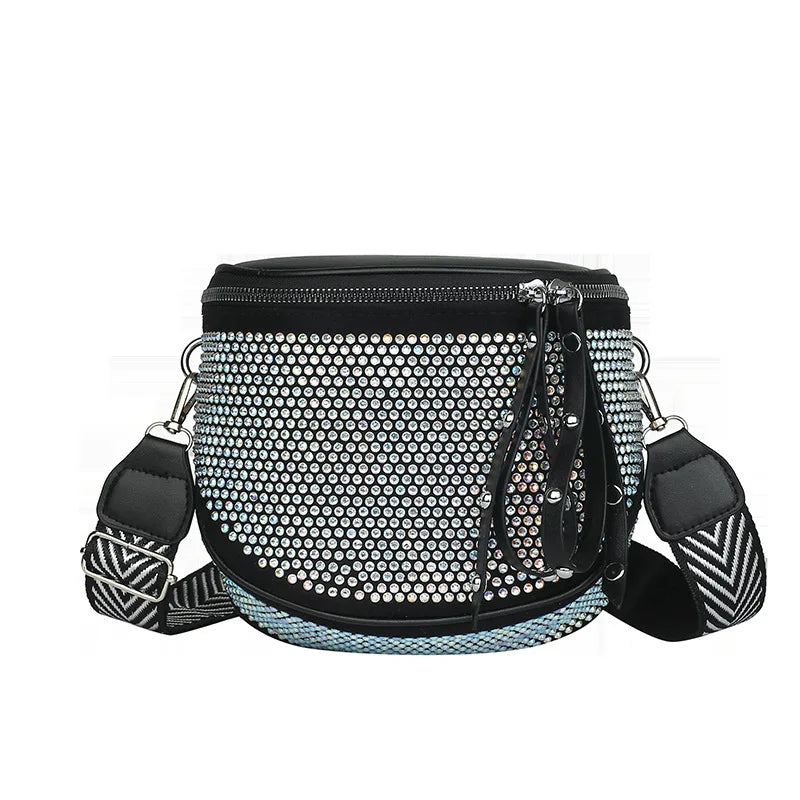Elegant diamond-studded crossbody messenger bag perfect for women on-the-go.