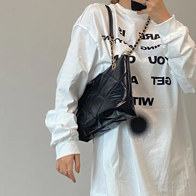 Stay stylish with this chic leather shoulder bag featuring a diamond lattice pattern and chain strap. Perfect for daily use or nights out.