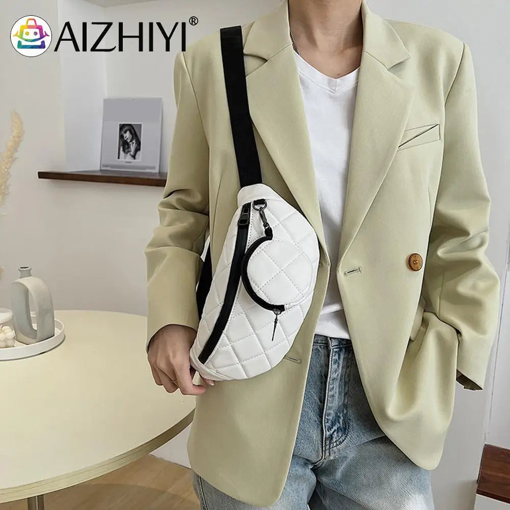 Stay stylish and hands-free with this fashionable women's waist bag featuring diamond lattice embroidery thread. Perfect for keeping your essentials close by.