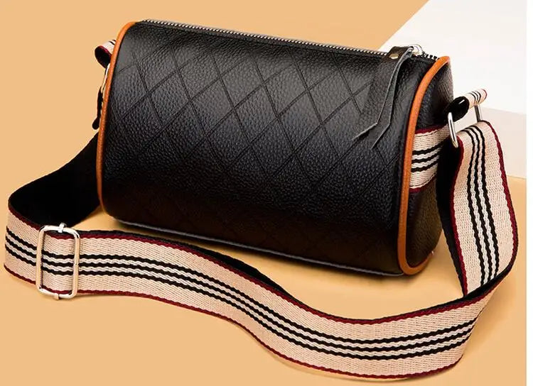 Diamond Lattice Leather Women Pillow Handbags Wide Strap Female Shoulder Bags