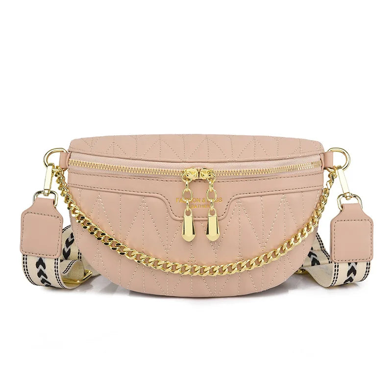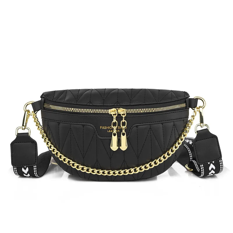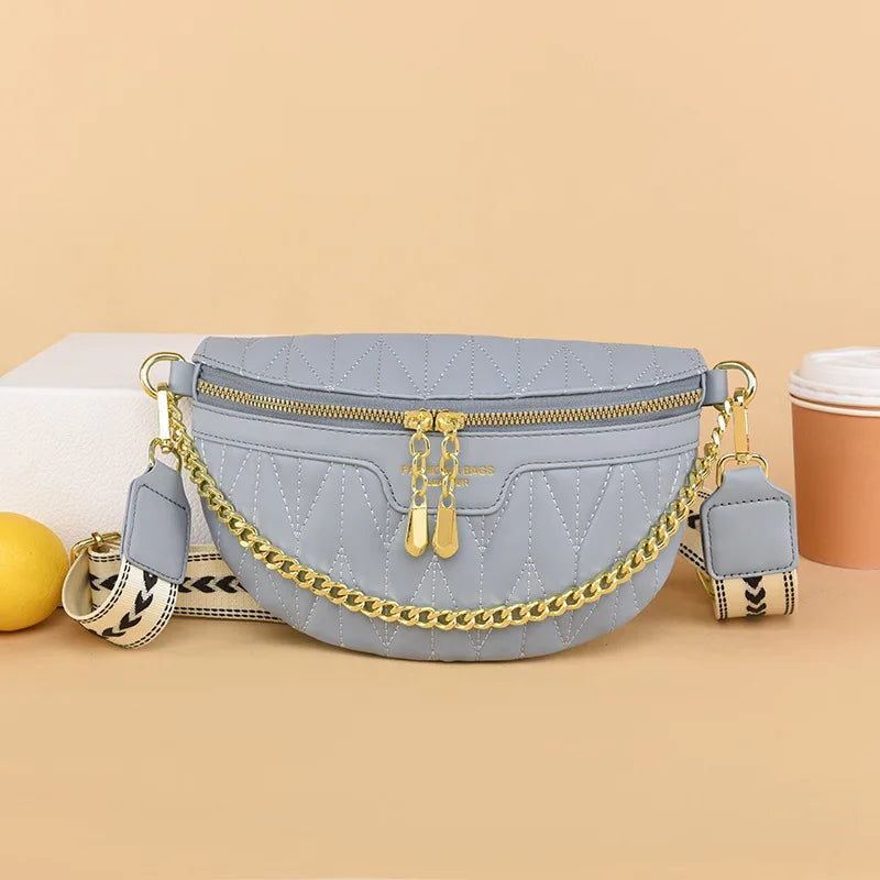 Diamond Lattice PU Waist Bag Chain Zipper Fanny Pack