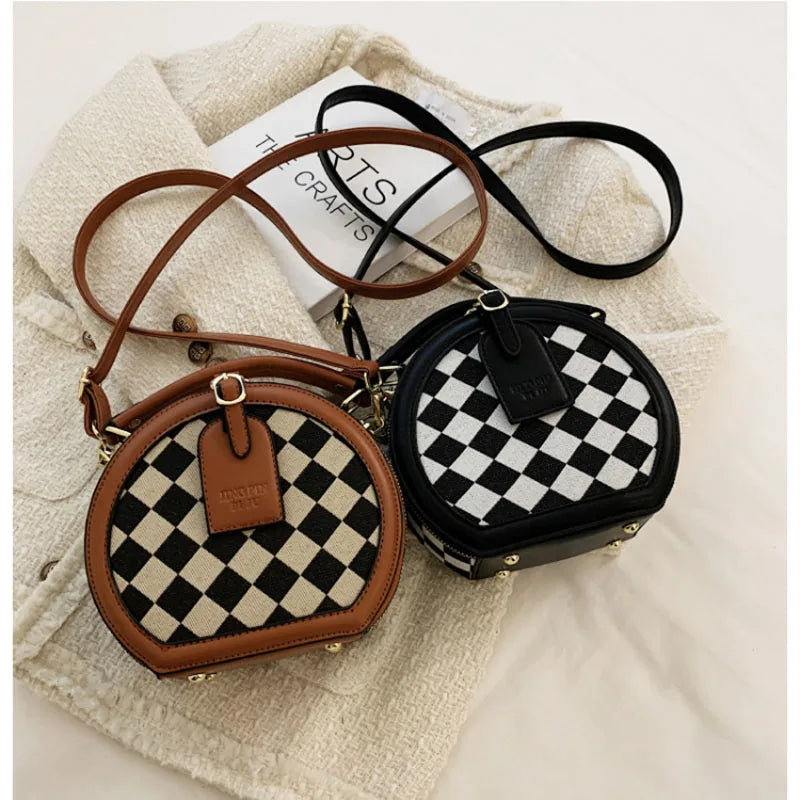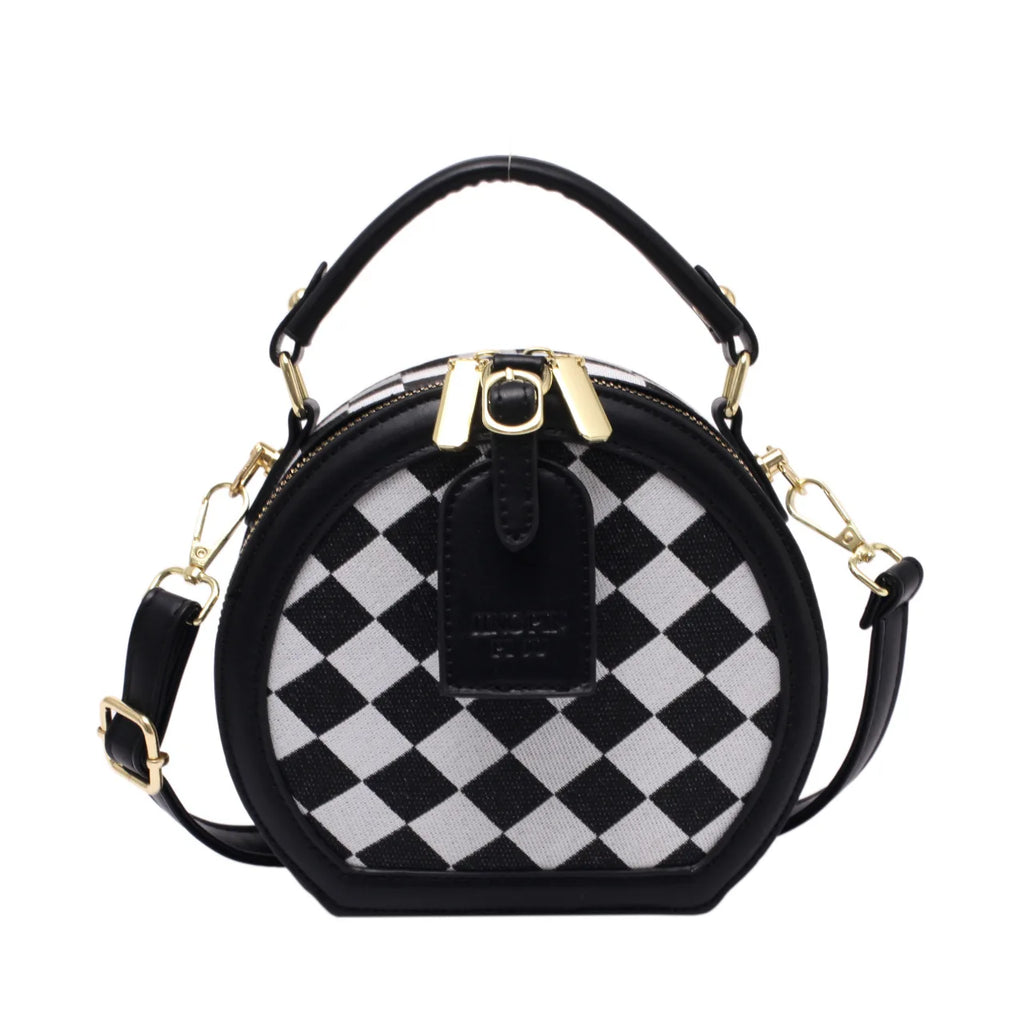 Diamond Lattice Round Small Bag Checkerboard Women's Bags Plaid Contrast Pack