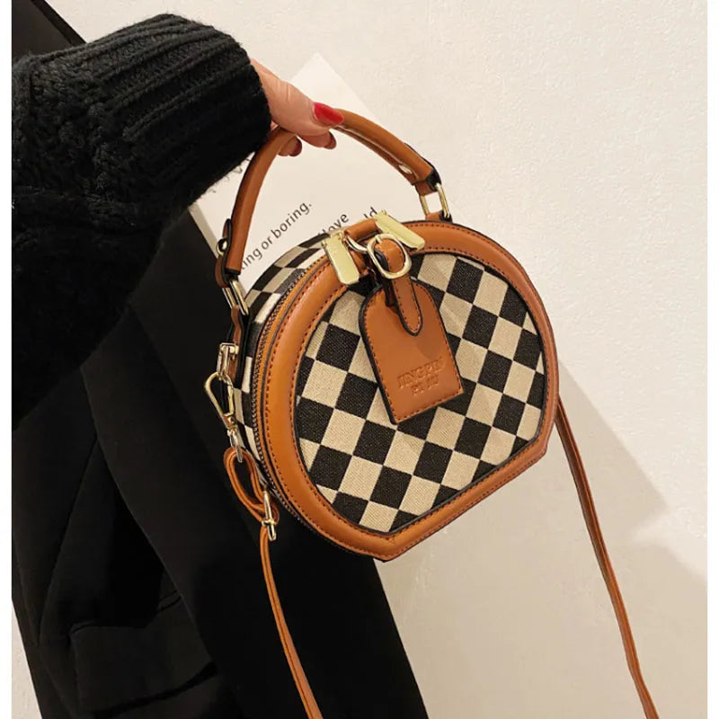 Description:This stylish handbag features a unique diamond lattice design with plaid contrast detailing. Perfect for a chic and fashionable look.Features: Round small bag with diamond lattice pattern Checkerboard design with plaid contrast Ideal for women who love trendy accessories Spacious interior to carry essentials Adjustable strap for comfortable wear This...