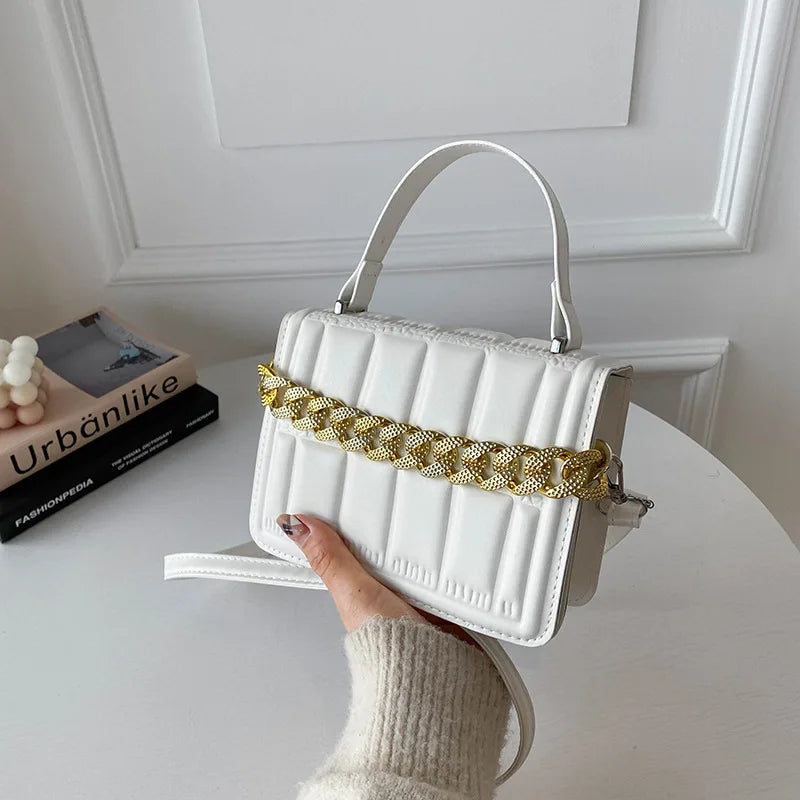 This stylish spring bag features a diamond lattice pattern and a high chain strap. It is perfect for carrying your essentials with a touch of elegance.