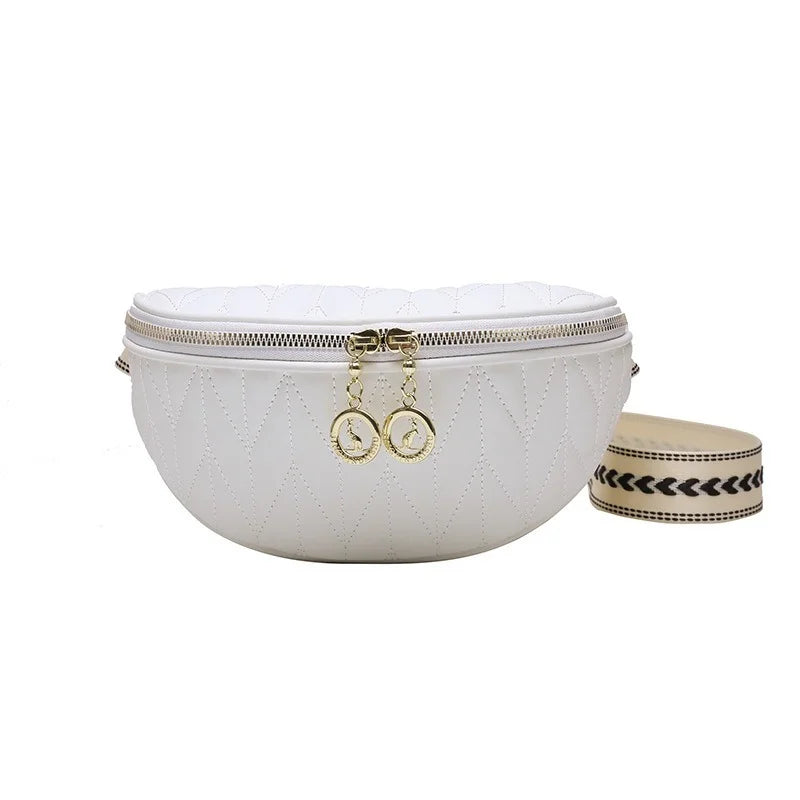 Elevate your style with this PU leather waist bag featuring embroidery threads and a wide strap. Perfect for carrying essentials on the go.