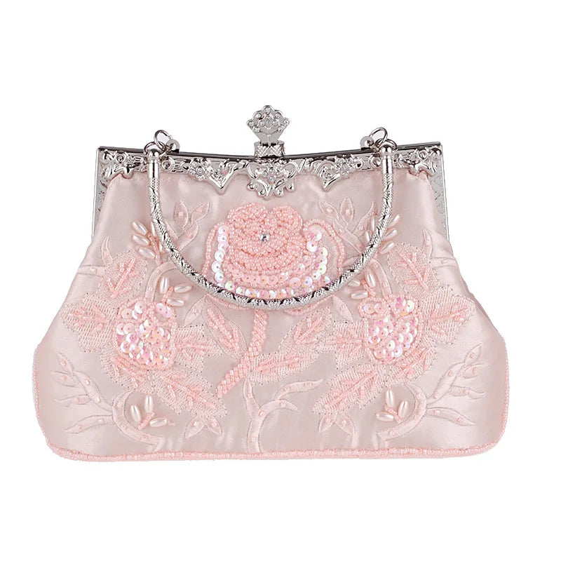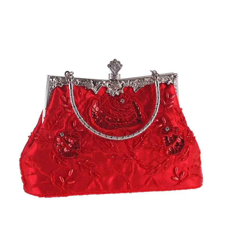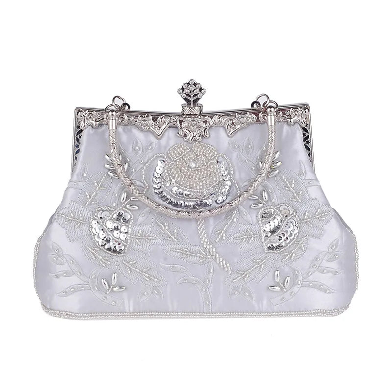 Elegant and stylish small clutch bag perfect for parties, weddings, and evening events. Features a shimmering diamond design and metal frame.