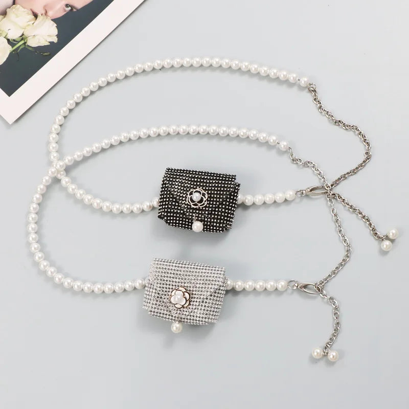 Diamond Pearl Mini Waist Bag Flower Small Chain Lady Belt Bag