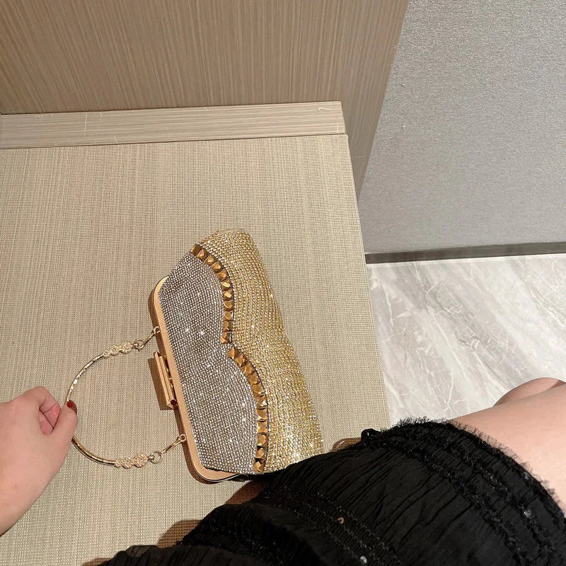 Elegant women banquet handbag with dazzling diamond-studded design and stylish tassel. Perfect accessory for weddings, parties, and special occasions.
