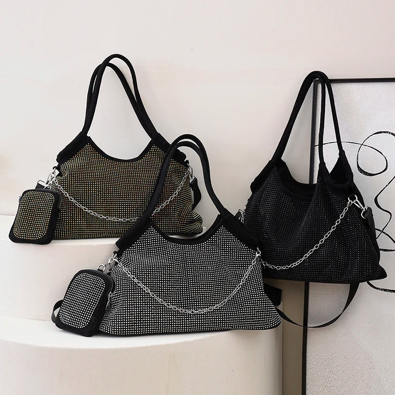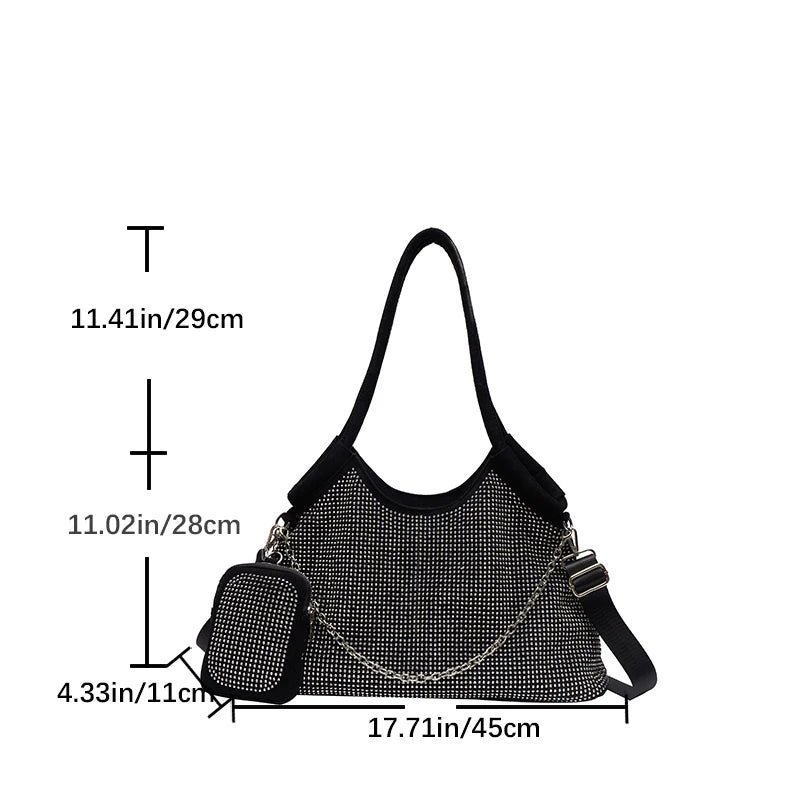 This stunning tote bag features a full diamond design, perfect for adding a touch of glamour to any outfit. The spacious size makes it ideal for daily use or special occasions.