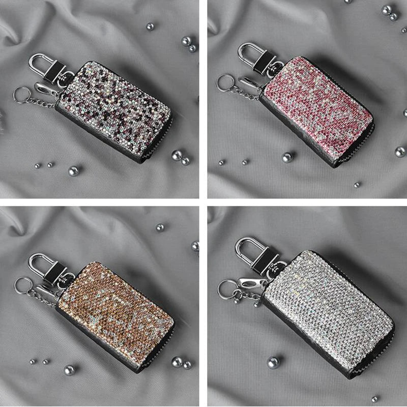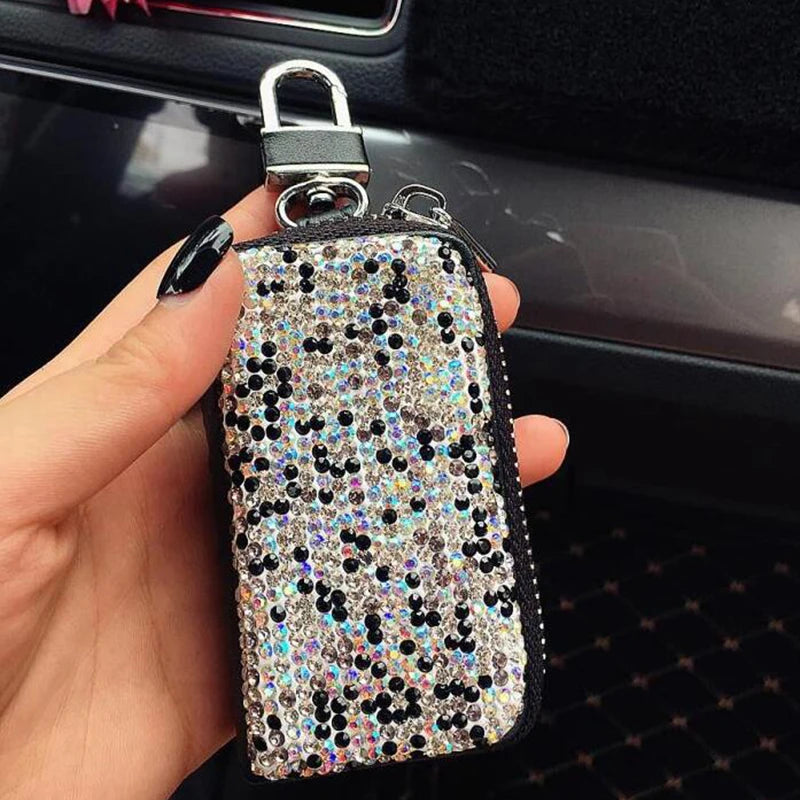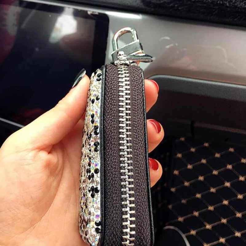 Stay stylish and organized with this luxurious diamond women car key bag made of high-quality PU leather. Perfect accessory for female drivers.
