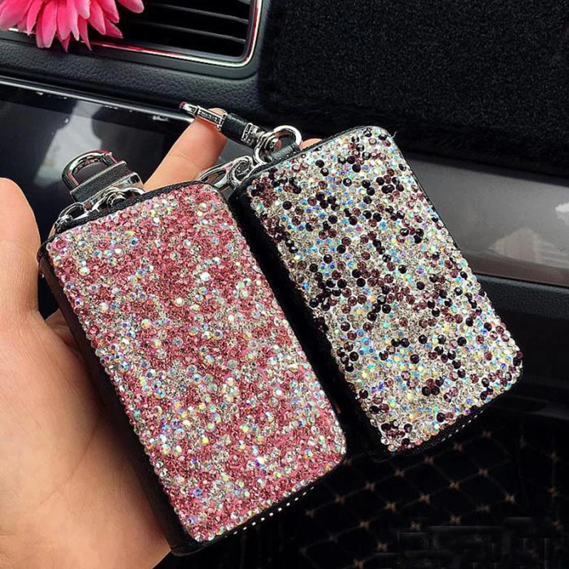 Diamond Women Car Key Bag PU Leather Keychain Car Key Case for Female