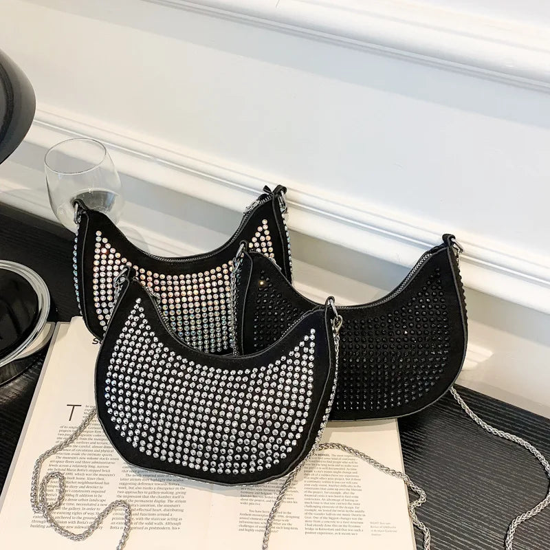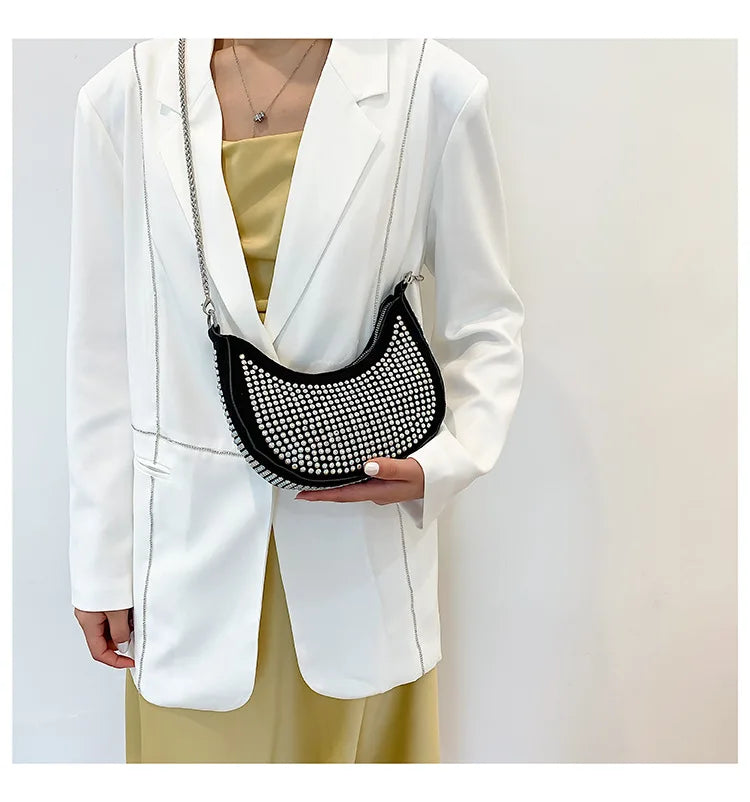 Diamond Women's Shoulder Bag Chain Crossbody Half Moon Handbag