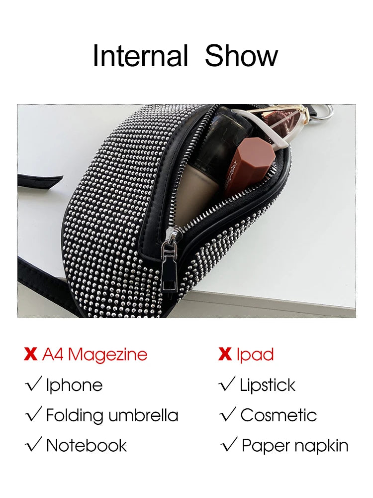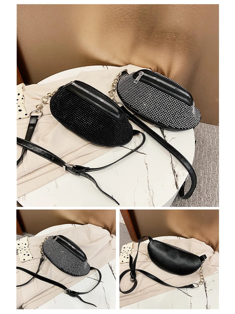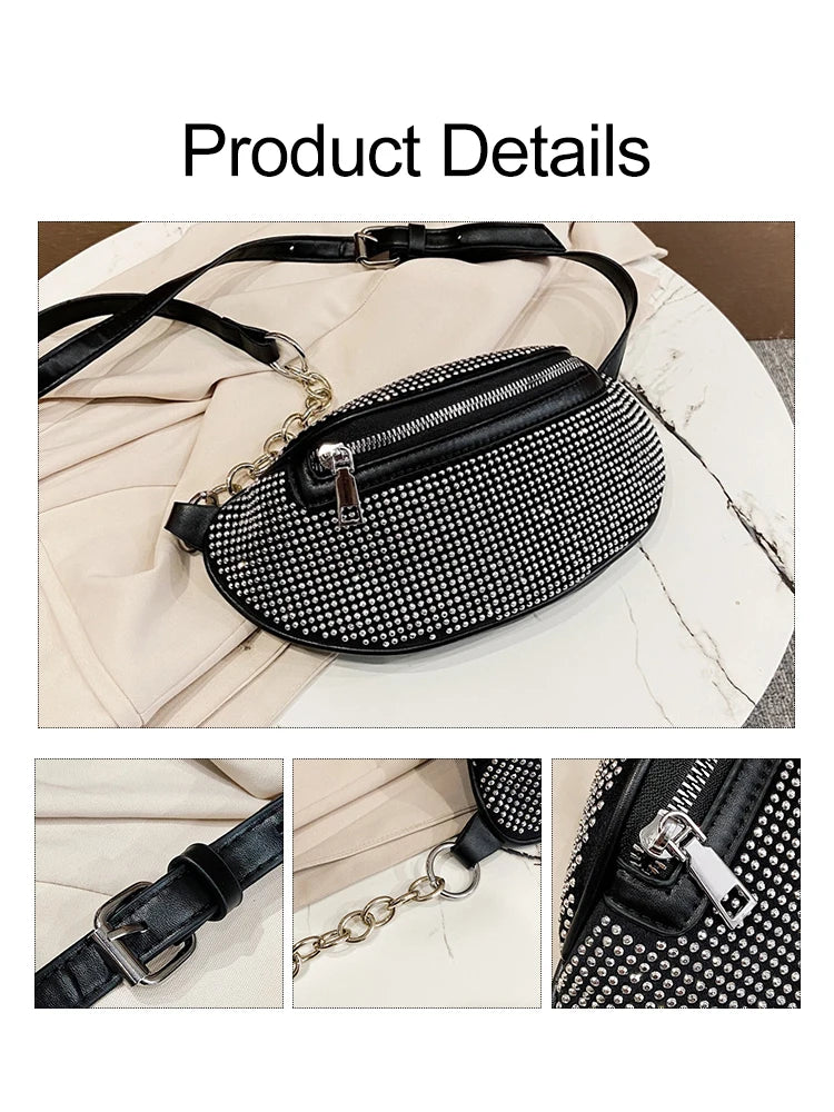 Diamond Women's Waist Bag Leather Belt Crossbody Chest Bag Female Fanny Pack