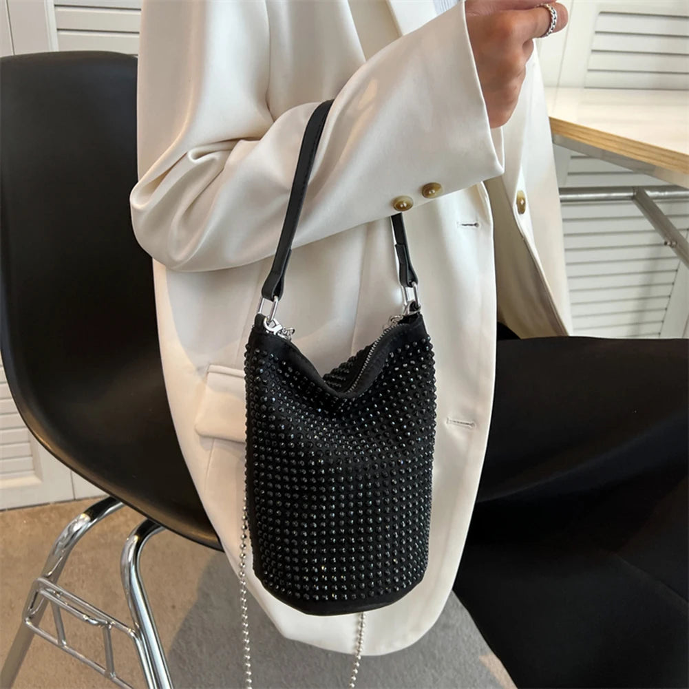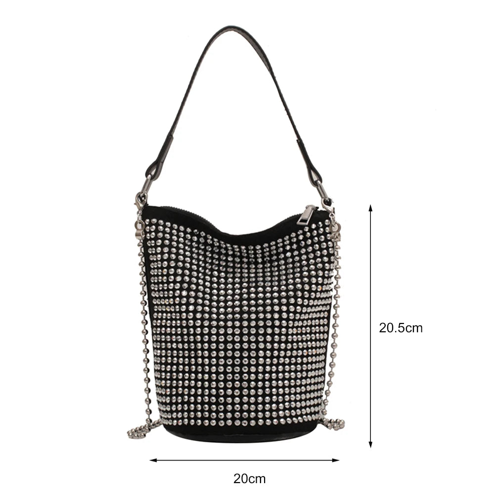 Diamonds Basket Bag Rhinestone Shoulder Crossbody Evening Party Bucket Purse