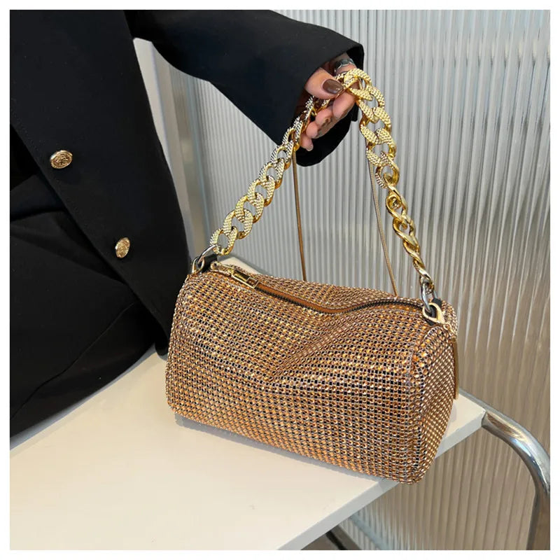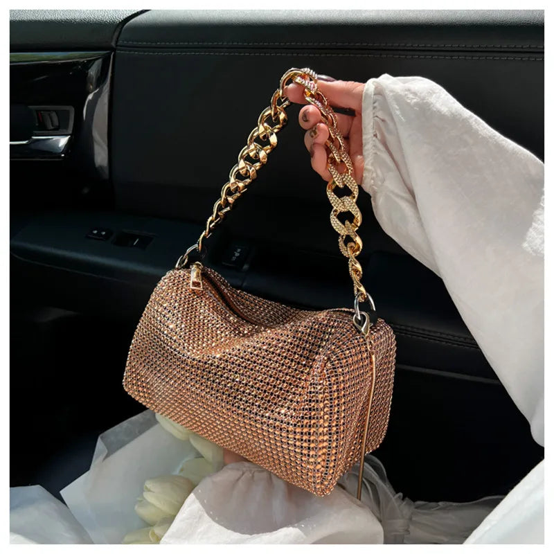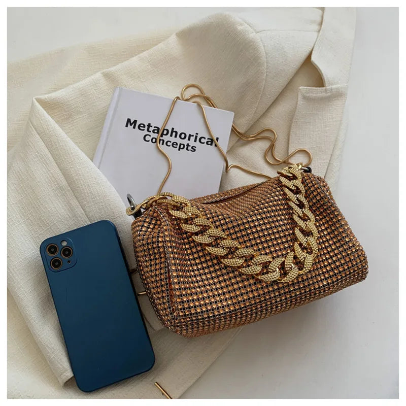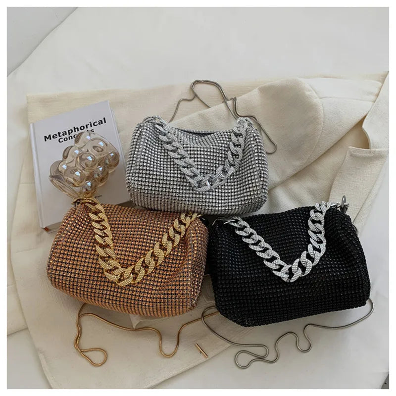 Elevate your style with this stunning handbag featuring high-quality diamonds and a chic chain strap. Perfect for any occasion.