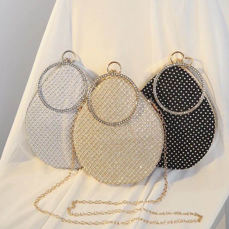 Diamonds Pattern Ring Totes Evening Bag Silver Wedding Lattice Rhinestone Bags