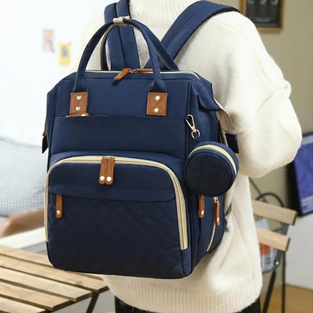 Stay organized and prepared with this versatile diaper bag backpack designed for moms on the go. It features multiple compartments and convenient stroller straps so you can effortlessly carry all your baby essentials.