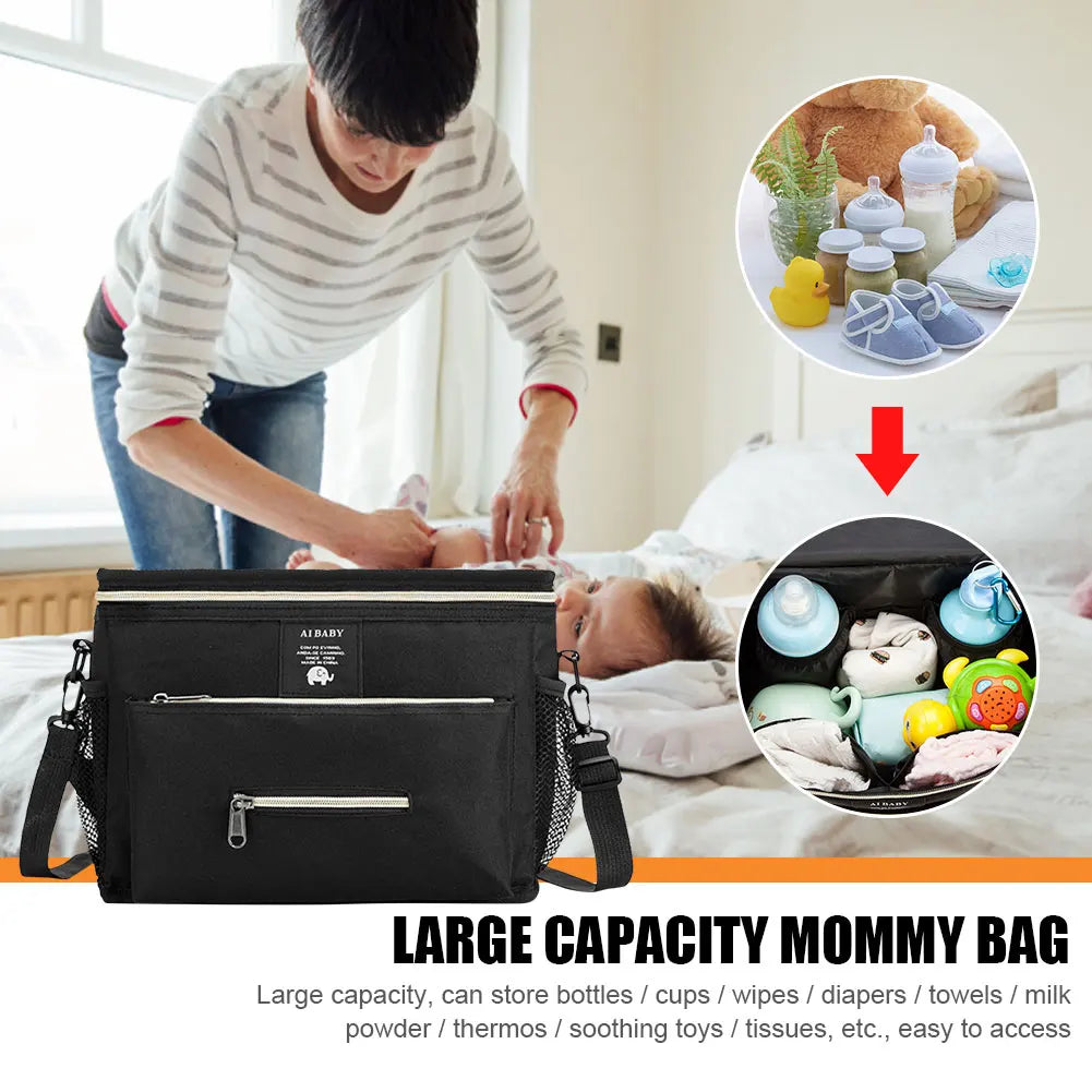 This diaper bag is perfect for moms on the go. It has plenty of space for your baby's essentials and can easily be converted into a backpack for added convenience. The bag also includes a changing mat and stroller organizer.