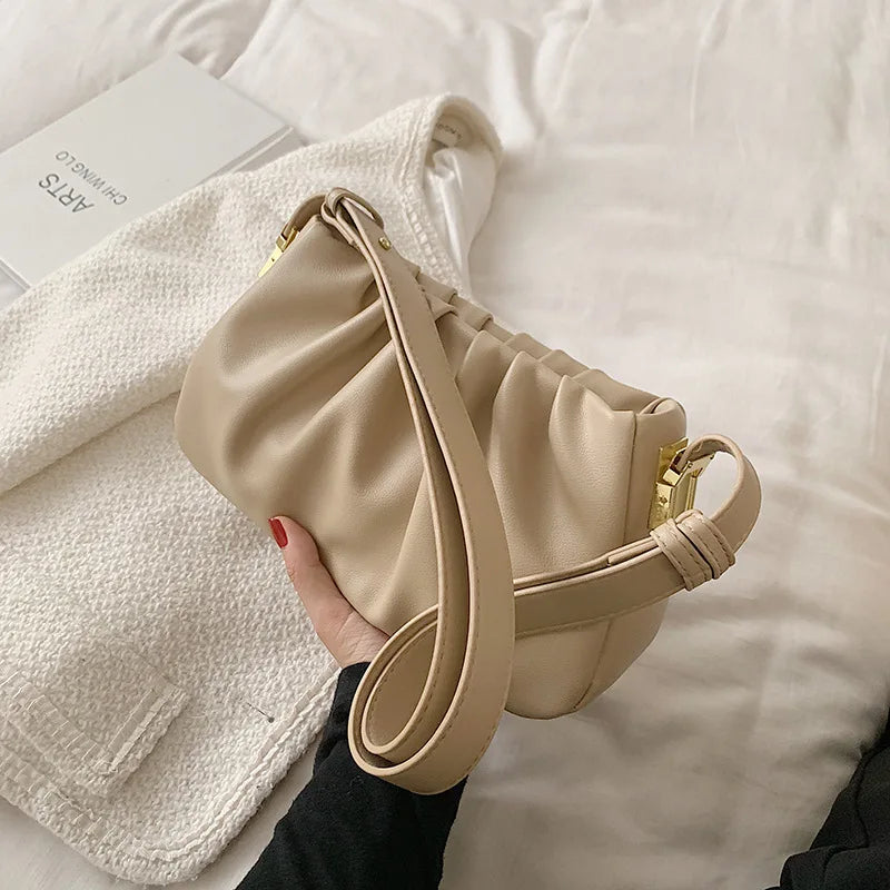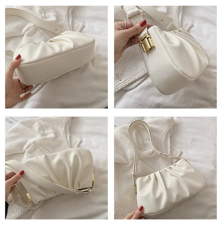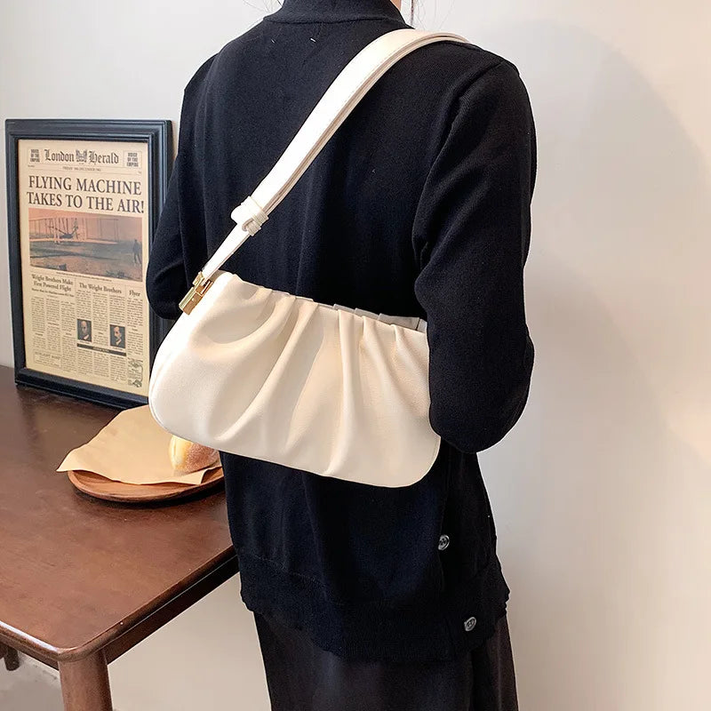 Stay stylish and trendy with this retro PU leather small armpit shoulder bag featuring pleats design. Perfect for winter, this handbag is a versatile accessory that can be worn as a shoulder bag or crossbody bag.