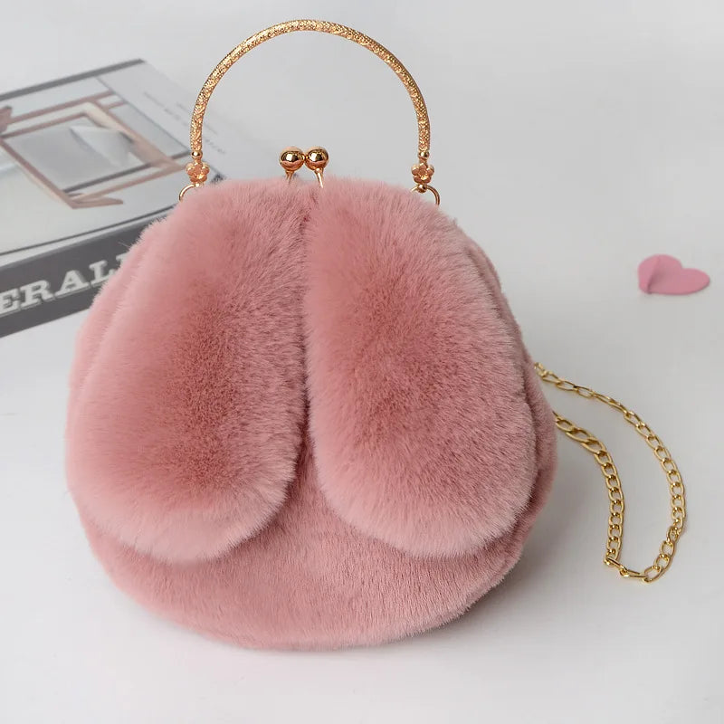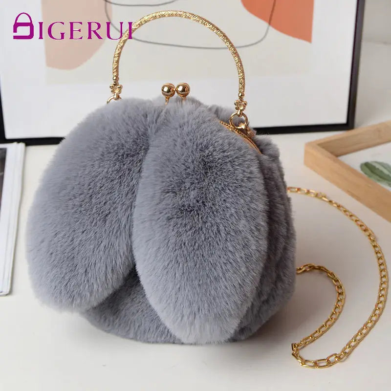 DIGERUI Women Plush Mini Shoulder Bag Soft Rabbit Ears Crossbody Bag