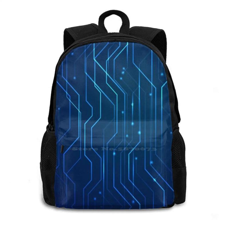 Stay connected on the go with this tech-inspired backpack featuring glowing circuit lines design.