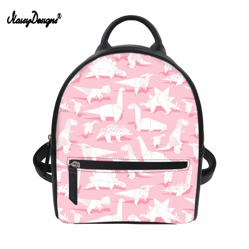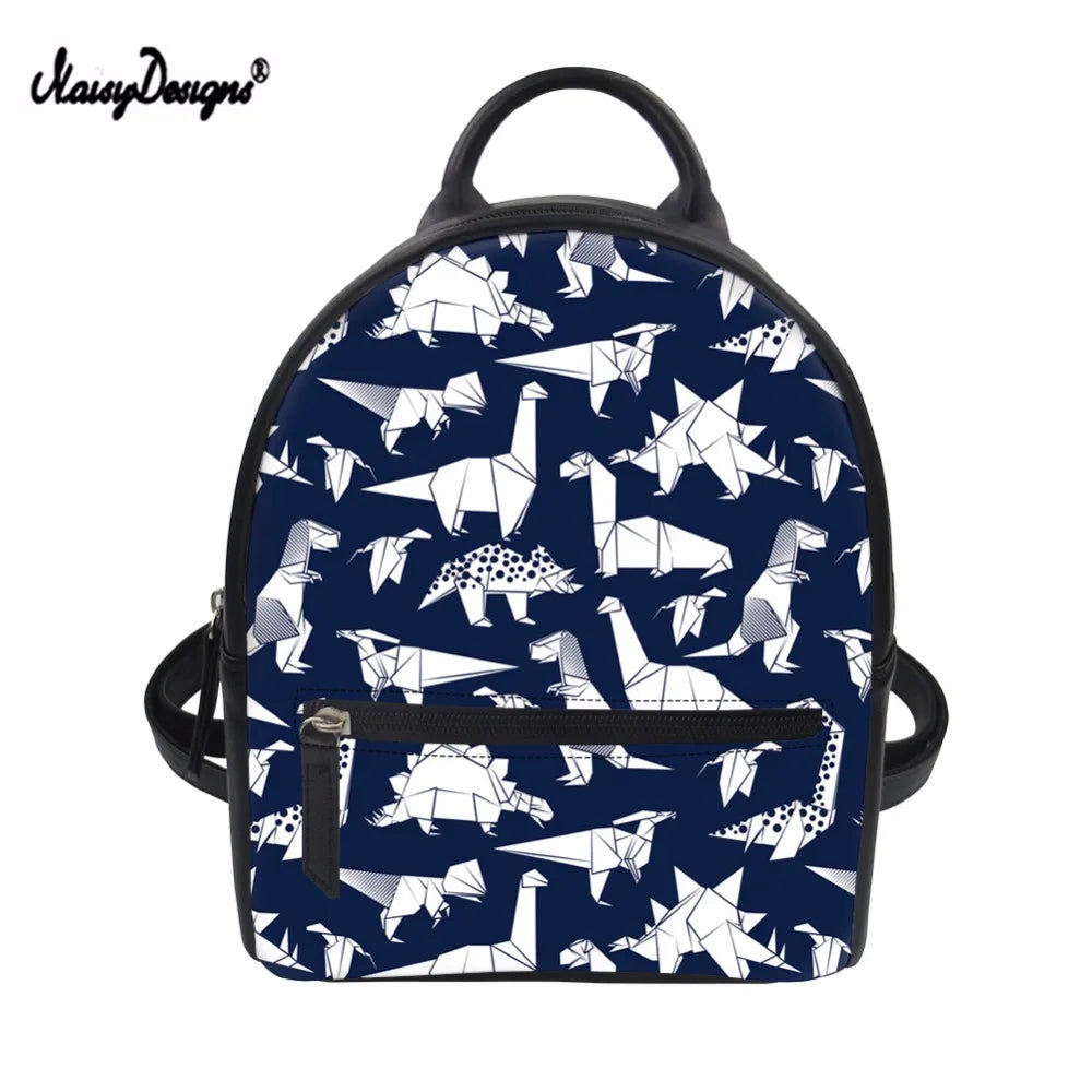 Dinosaur Animals Print Small Backpack PU Leather Girls Travel Daypack