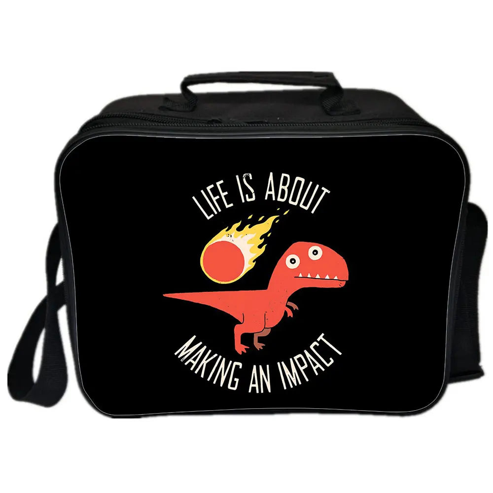 This portable insulated canvas lunch bag is perfect for women on-the-go. It features a fun, Japanese cartoon design with dinosaurs, ideal for picnics, camping, or daily use.