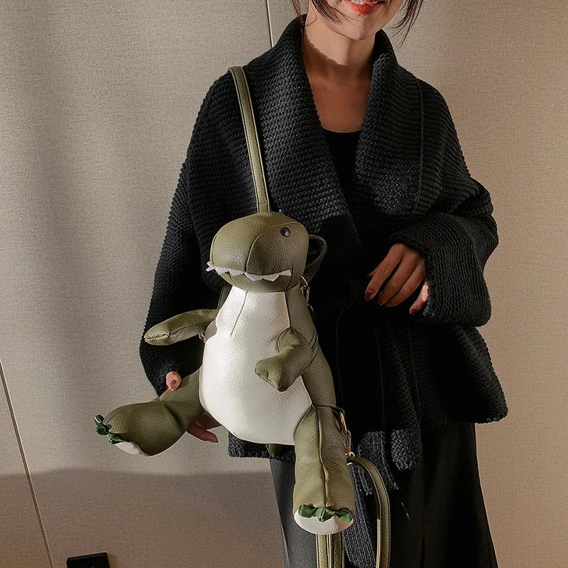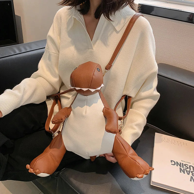 This dinosaur-themed backpack is perfect for parents and kids to match with high-quality leather material. Features a cute cartoon design with dinosaurs.