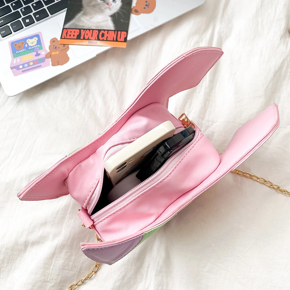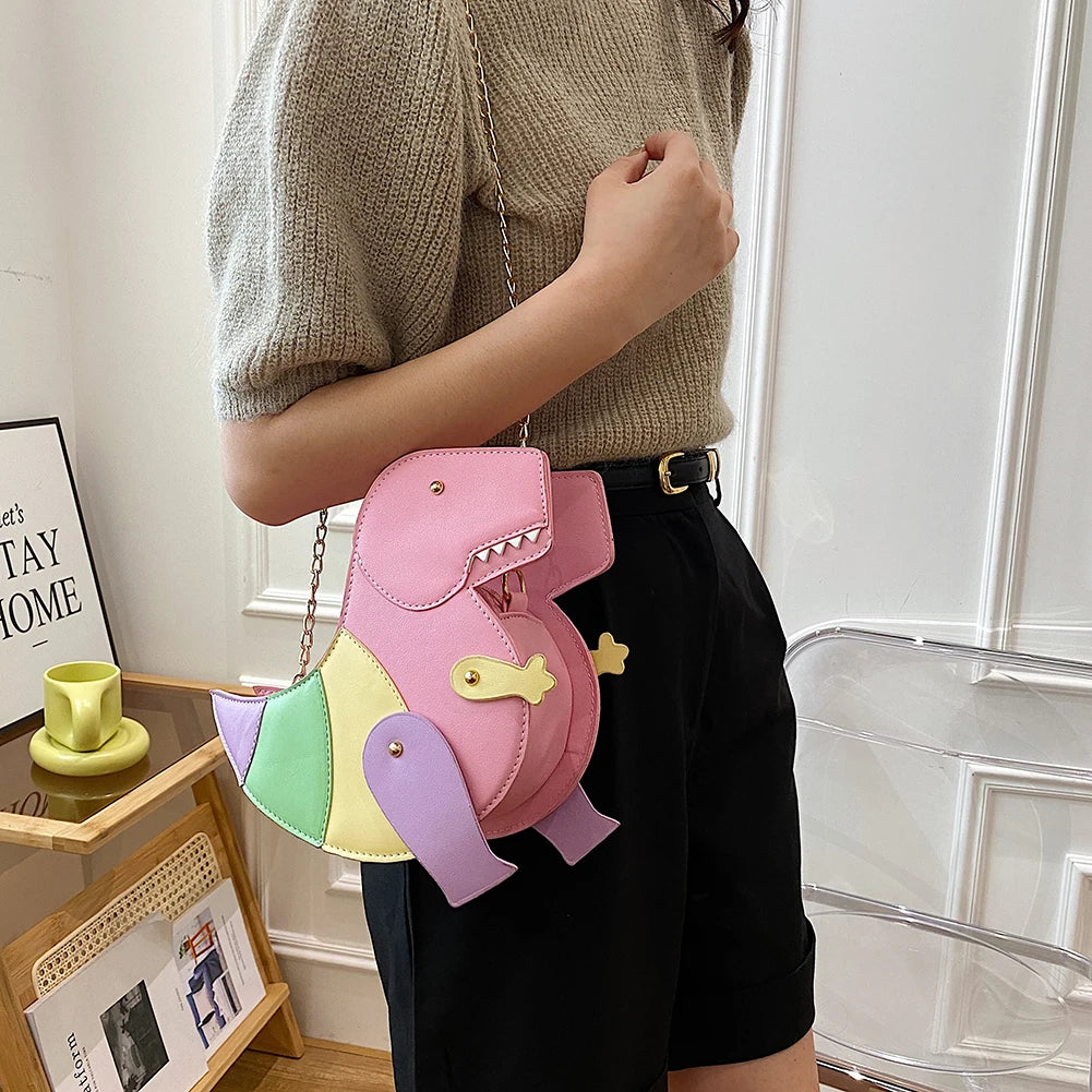 Elevate your style with this unique Dinosaur Rivets purse. Perfect for any occasion, this handbag features a chain strap, a flap closure, and a cute dinosaur rivet design.