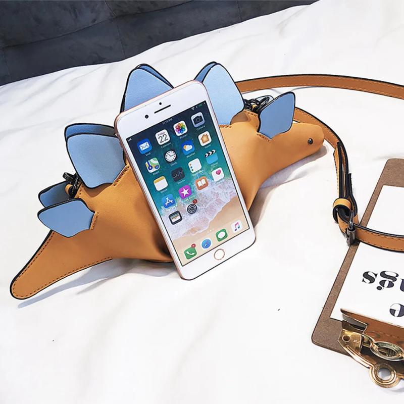 Dinosaur Shoulder Bag PU Leather Women Handbag Phone Holder Coin Purse