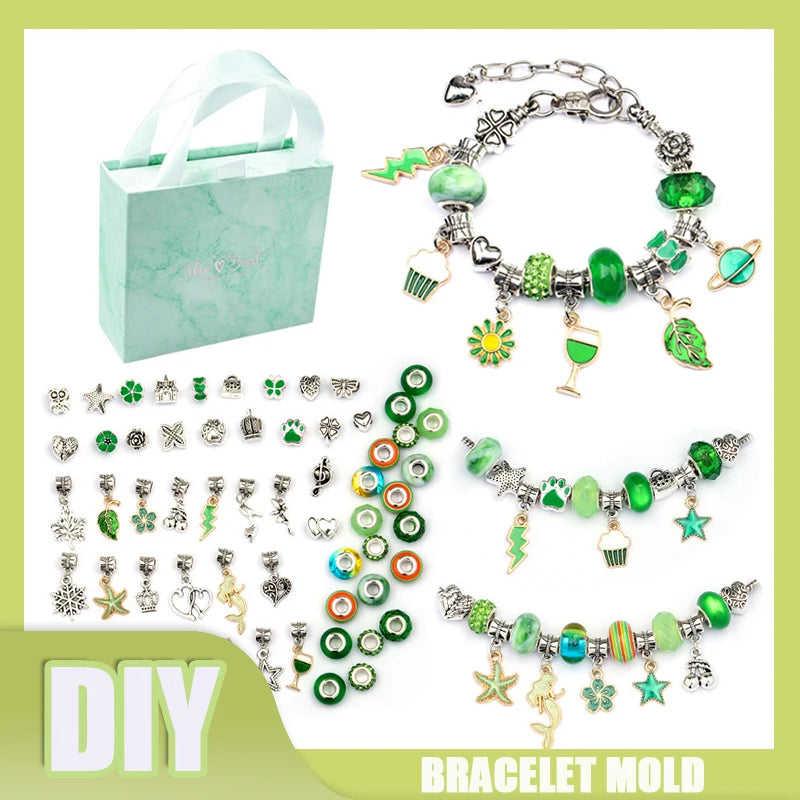 DIY Charm Bracelet Making Set Glass Beads Spacer Beads Pendant Accessories Kit